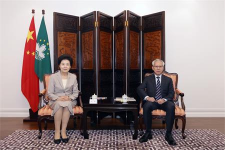 【本報訊】行政長官岑浩輝昨(2)日在禮賓府與全國政協副主席咸輝會面,雙方就打造更高水平對外開放平台、推進澳門經濟社會高質量發展等議題交流意見。