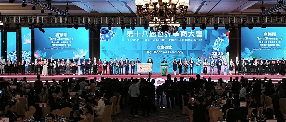 林楚欽宣佈第19屆世界華商大會於2027年在阿聯酋阿布扎比舉辦;他還宣佈,從第19屆開始,恢復兩年舉辦一屆。他並與崔世昌、蔡冠深、高泉慶及阿聯酋中華工商總會會長唐振剛一道,在現場進行世界華商大會會旗交接儀式。