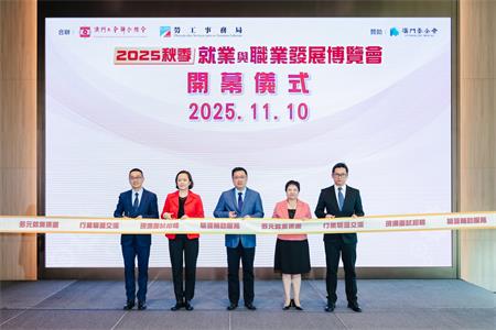 【本報訊】由工聯總會與勞工事務局合辦,澳門基金會贊助秋季“就業與職業發展博覽會”於1110一連兩天在旅遊塔四樓舉辦,開放時間為上午10時至下午130分及下午3時至晚上8時。市民可透過現場排隊領取籌的方式入場求職。澳門中聯辦社工部處長孫志君、澳門基金會行政委會副主席鍾怡、勞工副局長陳子慧、工聯副會長李振宇、深度合作區民生事務局社會保障處副處長林君凡主禮於今日上午舉行的開幕禮。
