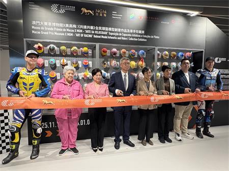 【本報訊】為進一步推動社會共融理念,美高梅與大賽車博物館攜手推出並獲得教青局、工會聯合總會、街坊會聯合總會、婦女聯合總會及扶康會大力支持的《共速共融》全民頭盔模型創意作品及車手珍藏展今(12)日上午11時在大賽車博物館揭幕。展覽呈獻全民參與創作的頭盔模型與車手珍藏,展期由即日起至明年15日。旅遊局局長文綺華、工會聯合總會會長何雪卿、婦女聯合總會會長劉金玲、街坊會聯合總會副會長姚家鵬、扶康會會員大會主席飛迪華和美高梅中國控股有限公司總裁及首席運營官王志琪等出席開幕儀式。