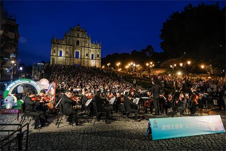 【本報訊】為呼應粵港澳三地聯合舉辦的十五運會及殘特奧會,促進文體協同發展,文化局聯同澳門樂團有限公司於世遺景點大三巴牌坊舉辦系列音樂會,以豐富多彩的表演及互動將熱情與活力帶入社區。澳門樂團今晚(12日)上演《樂悠世遺》音樂會,吸引眾多市民與旅客駐足欣賞,現場氣氛熱烈。