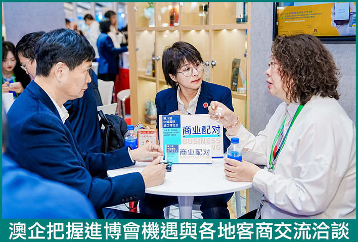 有代理葡語國家產品的澳門企業表示,今年進博會的參會客商專業化程度進一步提升,期間接觸到的內地及國際客商較過往更積極了解產品及服務,並對利用澳門平台開拓新業務展現出濃厚興趣與信心。也有首次參展的澳門大健康企業接洽9至10家來自內地及澳洲涵蓋產業鏈上下游的客商,認同進博會能助力特色產業拓展國內外市場。