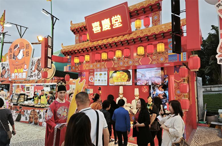 位於五星級酒店內的“喜慶堂”今年是第一次參展美食節,展位搭建主打喜慶的中國建築風格,負責人蕭小姐在現場告訴記者,在美食節的價格比在酒店內低不少,得益於這裡的製作成本比在五星級酒店內要低。她指出平時店內的顧客以本澳居民居多,希望透過美食節增加曝光率,讓更多遊客,特別是更多省市的遊客了解“喜慶堂”,更多地尋跡到店內惠顧。