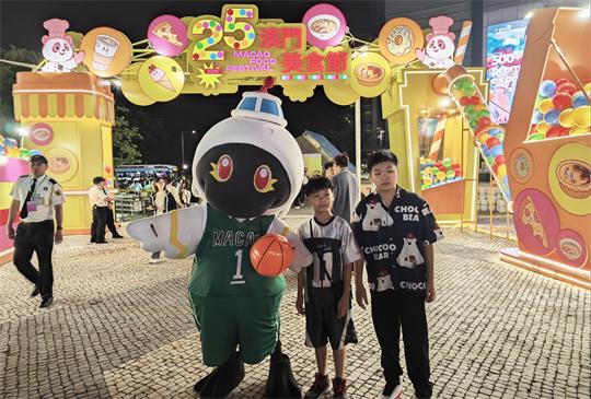 澳門旅遊吉祥物黑臉琵鷺“麥麥”在美食節迎客