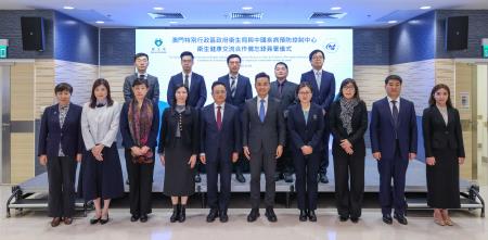 【本報訊】衛生局羅奕龍局長、疾病預防控制中心梁亦好主任及公共衛生化驗所呂綺玲主任等,昨(19)日與中國疾病預防控制中心王健偉主任率領的代表團舉行座談會,雙方簽署了《衛生健康交流合作備忘錄》,進一步加強在傳染病防控、慢性病綜合防控及公共衛生領域的合作。