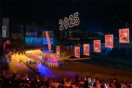 此外,閉幕式另一亮點是安排了一系列精彩文體展演,匯演整體以“星辰大海”為主題,並以“海天為幕,城市為景”打造了全球首個城市全景的閉幕式,同時結合科技元素、嶺南歷史及粵港澳大灣區的人文特色,為十五運會閉幕式劃上完滿句號。
