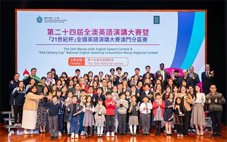 【本報訊】由澳門理工大學主辦,理大-貝爾英語中心承辦,以“第十五屆全國運動會”為主題的第二十四屆全澳英語演講大賽暨“21世紀杯”全國英語演講大賽澳門分區賽順利舉行。大賽旨在為本地學生提供展示英語能力的平台,推動澳門英語教育發展,培育擁有國際視野及多語言溝通能力的新一代人才。大賽頒獎典禮獲澳門多所學校校長、代表、師生及家長等三百多人出席,共同見證參賽者在英語演講上的卓越表現與豐碩成果,氣氛熱烈。