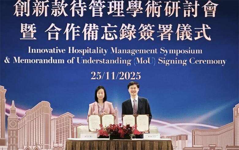 【本報訊】金沙中國有限公司與澳門旅遊大學今(25)日下午在澳門倫敦人格林威治宴會廳合辦“創新款待管理學術研討會”,金沙管理層、旅大專家和學者、業界翹楚圍繞科技賦能,展開款待、人機智能、可持續發展三場論壇,與與會的政府部門、金沙團隊、行業協會成員及旅大師生,探討澳門酒店業的未來發展方向。雙方並簽訂“金沙中國西餐廚藝精英計劃”合作備忘錄,進一步深化產學研合作及人才培育。