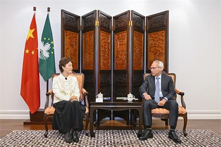 【本報訊】行政長官岑浩輝今(26)日在禮賓府與最高人民法院副院長陶凱元會面,雙方就持續加強內地與澳門的司法交流合作、共同推動粵港澳大灣區司法制度配套銜接等議題交流意見。