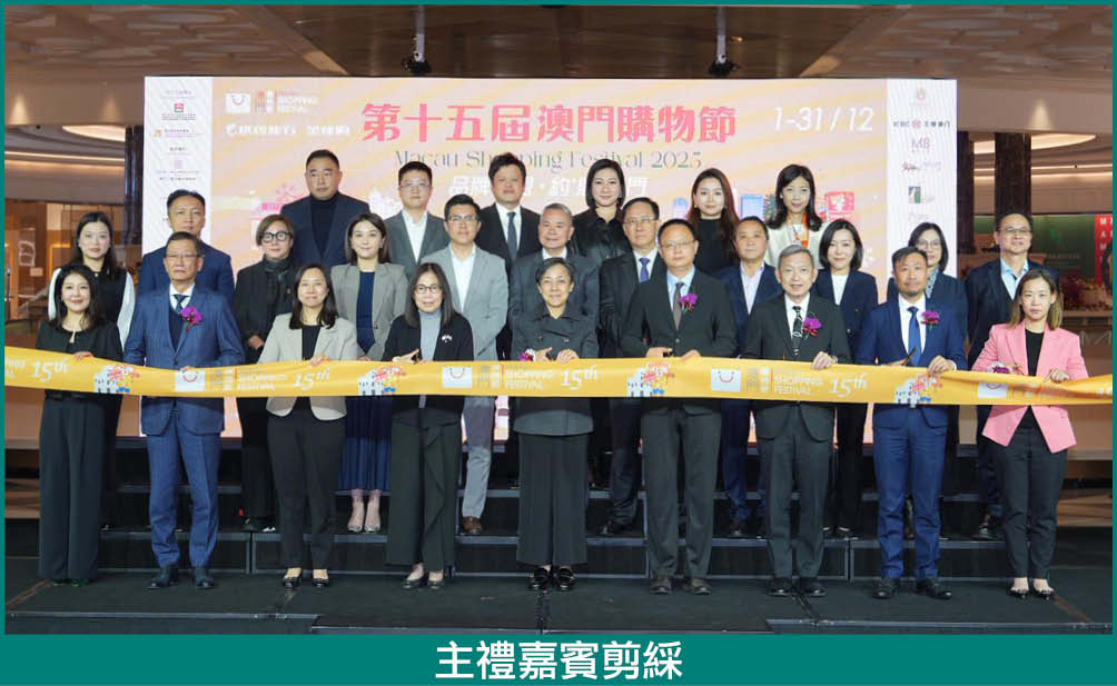 第十五屆澳門購物節開幕典禮於11月27日於上葡京綜合度假村舉行,活動匯聚各界政商界領袖,共同見證澳門零售業發展的重要里程碑。出席主禮嘉賓包括:旅遊局文綺華局長、經科技局鄭曉敏副局長、澳門中聯辦經濟部楊毅副處長、消委會消權廳余琴廳長,購物節籌委會總幹事、澳門國際品牌企業商會董志遠理事長,購物節籌委會副主席兼旅遊零售服務業總商會葉榮發理事長,購物節籌委會副主席、零售管理協會何耀南常務理事長,攜程集團全球購品牌合作部吳燕麗總經理、澳娛綜合有限公司零售林思靈高級副總裁及全體籌委會成員嘉賓等。