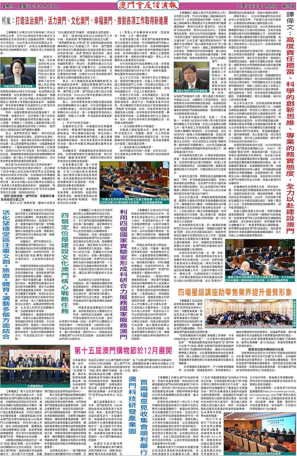 文綺華局長表示:“澳門購物接緊接在充滿節慶城市的12月展開,而旅遊局主辦的“2025澳門國際光影節”亦將於12月6日揭幕,加上澳門不同的社區活動,讓居民和旅客盡情享受“旅遊+城市+購物”的樂趣,進一步促進社區旅遊及消費。期望零售服務業界持續以專業態度和熱誠接待旅客,繼續響應“澳門有禮運動”,發揮有禮好客之道,為旅客帶來賓至如歸的旅遊體驗,共同鞏固澳門“世界旅遊休閒中心”的定位。”