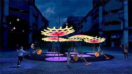 北區設置“綺光・樂園”主題裝置,在東方海岸休憩區、飛喇士街休憩區以及筷子基北灣休憩區,以“點—盞燈”體驗帶領參與者品味在地記憶,融合世遺建築與中葡傳統文化,透過溫暖趣味的社區活動,展現“澳門歷史城區”的獨特魅力。
