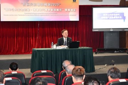 【本報訊】為深化民防範疇各部門對國家“大安全、大應急”框架的理解,進一步提升澳門城市安全治理水平,警察總局於12月4日在出入境事務大樓舉辦專題講座,主題為“築牢公共安全防線,構建現代應急管理體系”。講座特邀原國務院參事、原國家減災委專家委副主任閃淳昌教授,以及中國工程院院士、清華大學公共安全研究院院長范維澄教授擔任主講嘉賓。保安司司長陳子勁、警察總局局長梁文昌,聯同民防架構、社區民防聯絡機制代表,以及民防志願者合共140人出席。活動在各方代表的支持下,設有40個線上直播點,線上參與總人數逾920人。