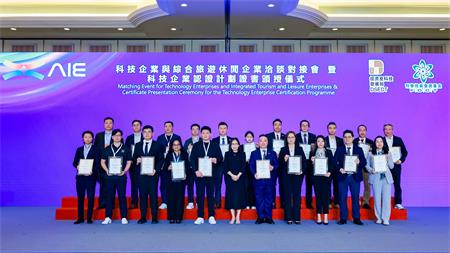 【本報訊】由經濟及科技發展局(下稱“經科局”)和科學技術發展基金(下稱“科技基金”)主辦的“科技企業與綜合旅遊休閒企業洽談對接會暨科技企業認證計劃證書頒授儀式”(下稱“對接會”)今(5)日假澳門威尼斯人舉行,是今年“全球智能機械與電子產品博覽會”(下稱“AIE”)的系列活動之一。經科局代局長鄭曉敏、科技基金行政委員會委員鄭冠偉、6間綜合旅遊休閒企業代表、獲頒授《科技企業認證計劃》認證證書的科技企業,以及AIE“澳門創科館”參展企業代表等逾100人出席。