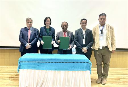 與東帝汶國立大學校長João Soares Martins(中)代表兩校簽署合作協議