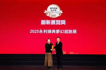 “創新展覽獎”則嘉許為澳門會展市場注入創新活力、兼具影響力與市場反響的展覽項目。“2025永利臻典夢幻超跑展”突破傳統車展形式,巧妙融合頂級超跑、時尚文化、藝術美學、美食佳釀與互動科技。活動不僅展出超過20輛世界級超跑,更匯聚澳門首度公開展出的標準規格一級方程式賽車及多項亞洲獨家首發的跨界聯乘系列,並特設專業級F1賽車模擬器與“永利巧克力超跑”展區,打造創新多元的沉浸式觀展體驗,展現跨界融合的無限可能。