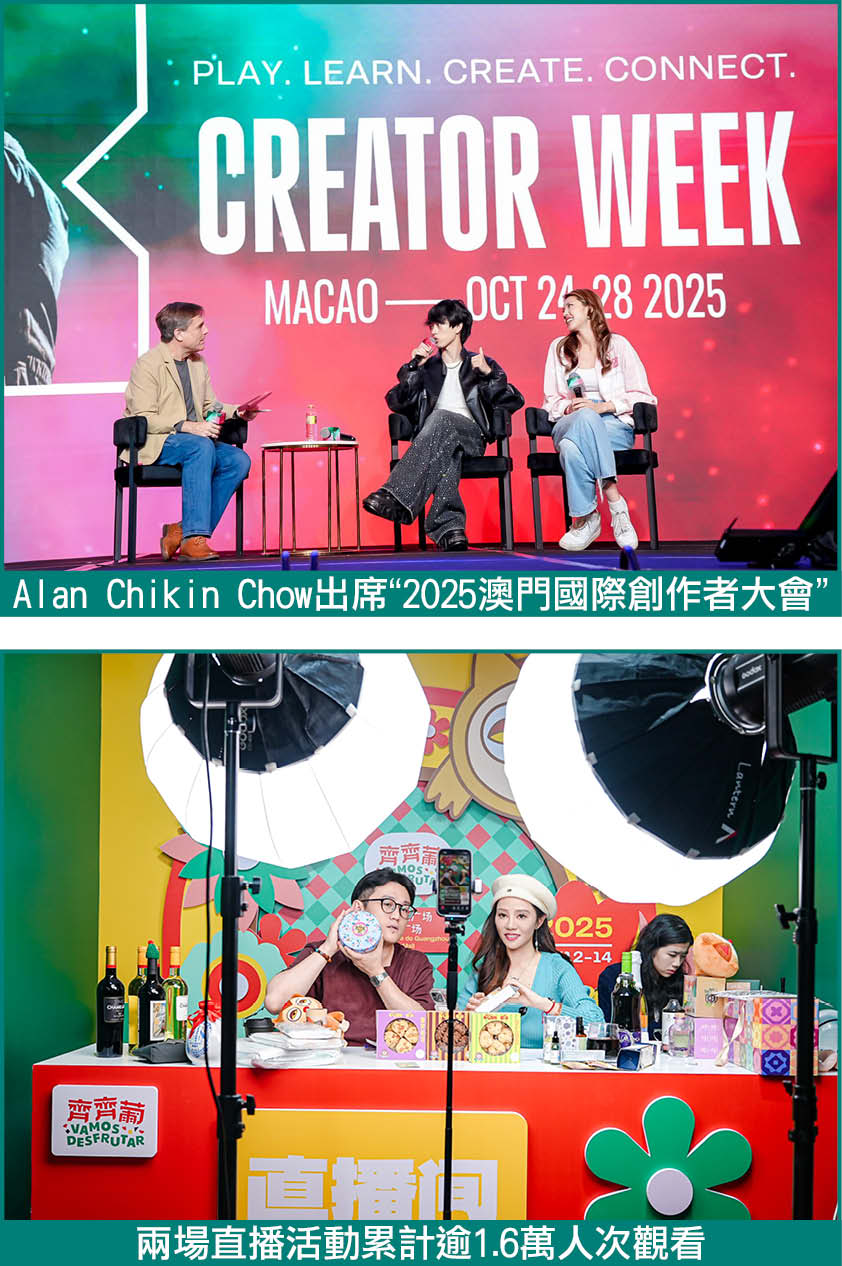 “2025澳門國際創作者大會”今年10月在澳門舉行,Alan Chikin Chow受邀參與並在活動上分享創作經驗。他在訪問中特別提到,澳門戀愛巷中葡融合建築的獨特風格令人印象深刻,而路氹金光大道則是為Z世代量身打造的打卡場景。希望通過作品成功讓觀眾感受到澳門獨特的文化氣質與街區氛圍,加強一站式旅遊目的地印象。