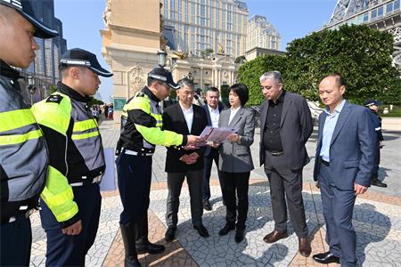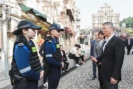 【本報訊】隨著訪澳旅客突破歷史新高,加上多項除夕大型倒數活動即將舉辦,警方預計將吸引大量市民和旅客參與慶祝。為確保各項活動安全有序進行,警察總局局長梁文昌昨日(29日)上午率治安警察局代局長伍素萍、警察總局局長助理梁文照、局長助理魏瑞斌、治安警察局副局長梁慶康、代副局長鄭俊禧等領導主管,先後實地視察大三巴、旅遊塔、官也街、金光大道等主要活動場地及人流密集區域,檢視節日安保工作的落實情況。