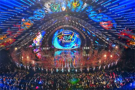 江蘇衛視的跨年演唱會為銀河綜藝館帶來了歡樂洋溢的氣氛,華語演藝明星們