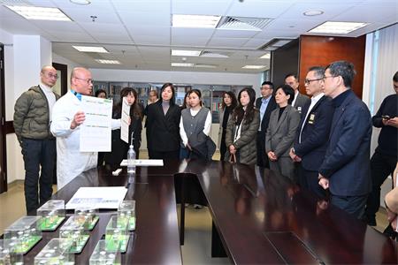代表團首先考察刑事技術廳,聽取毒品罪案調查處情報科李瀚妮主管講解用於打擊毒品犯罪的前端技術設備及其在緝毒行動中的實務應用。刑事技術支援處尤玲處長詳細介紹近年毒品檢驗及刑事鑑定方面的技術發展與工作成果。代表團亦參觀多個刑事技術單位,深入了解司警局在物證檢驗鑑定,特別是毒品及毒物分析方面的專業工作。