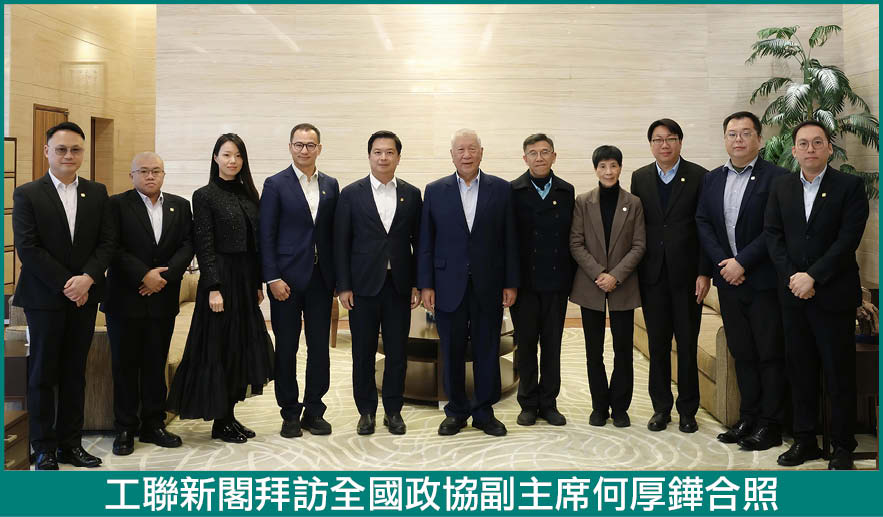 【本報訊】工聯總會會長林倫偉一行十人於日前拜訪中國人民政治協商會議全國委員會副主席何厚鏵,獲親切接見。工聯總會一行介紹會務近況,就積極配合特區政府對接國家“十五五”規劃、健全職工服務體系、融入大灣區發展及青年事務工作等與何厚鏵副主席進行交流。