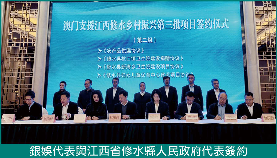 【本報訊】銀河娛樂集團(下稱“銀娛”)秉持“取諸社會,用諸社會”的理念,多年來積極支持不同類型的慈善公益項目。日前,銀娛參與由澳門政研發展局局長張作文、中聯辦經濟金融部副部長楊全州率領的代表團前往江西省九江市修水縣,出席澳門支援江西修水鄉村振興第三批項目簽約儀式,捐出港幣850萬元善款,支援命名為“澳樂幼兒保育中心”之婦女兒童保育中心的設施及設備建設,助力當地民生改善,提升修水縣的公共托育服務水平。