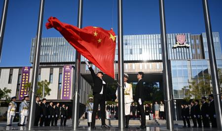 【本報訊】為喜迎澳門理工大學建校45周年,以及推動粵港澳大灣區教育緊密合作,深化培養大灣區青年的愛國主義,澳門理工大學學生事務處與香港中文大學(深圳)學生事務處聯合舉辦跨校升旗儀式。澳理大國旗儀仗隊一行24名師生前往香港中文大學(深圳),與該校國旗護衛隊開展聯合升旗訓練及互動交流,藉以凝聚澳深兩地學子的情誼,共同厚植家國情懷。