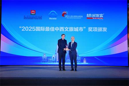 國際最佳中西文旅城市」獎項頒發,由胡潤集團董事長兼首席調研官胡潤親自頒獎、