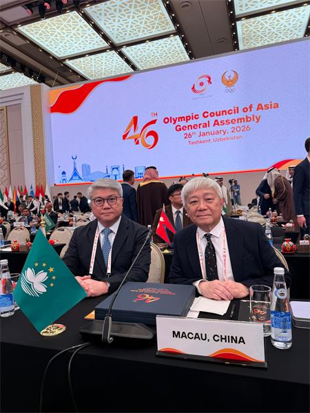 【本報訊】亞奧理事會(OCA)於2026126日在烏茲別克 - 塔什幹舉行了“第四十六次會員大會”。中國澳門體育暨奧林匹克委員會主席陳澤武及副主席潘永權代表出席大會。