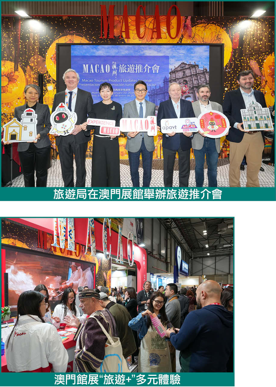 除了線下參展外,旅遊局已同步啟動一系列推廣項目,包括與在西班牙及葡萄牙具影響力的旅遊集團Ávoris合作,在展會開始前至4月開展一系列宣傳,並針對西葡市場打造更多內地與澳門的聯遊產品,致力延長旅客停留時間,提升旅遊消費。