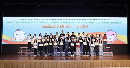 【本報訊】第十五屆全國運動會及全國第十二屆殘疾人運動會暨第九屆特殊奧林匹克運動會(十五運會及殘特奧會)成功舉辦。教育及青年發展局與十五運會及殘特奧會澳門賽區籌備辦公室於1月29日在教業中學舉行星級志願者嘉許計劃、徵文比賽及繪畫比賽頒獎禮,以表彰表現優異的志願者以及兩項比賽的得獎學生,透過積極投身志願服務、文字與藝術,傳遞“團結、奮鬥、包容、友愛”、“殘健融合、自強不息”的正向能量。