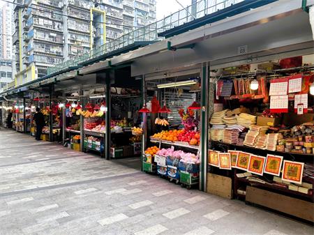 於農曆新年前,小販在優化後的小販區繼續經營