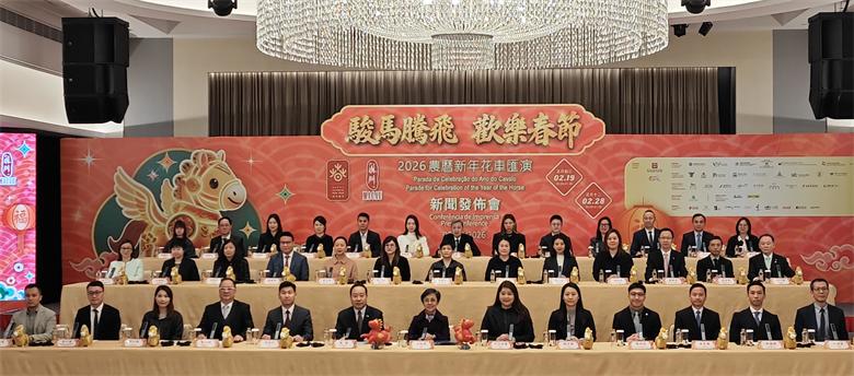 “駿馬騰飛 歡樂春節2026農曆新年花車匯演”由旅遊局主辦以及亞洲旅遊交流中心、市政署、經濟及科技發展局(下稱“經科局”)、招商投資促進局(下稱“招商局”)、文化局、體育局和橫琴粵澳深度合作區經濟發展局(下稱“合作區經發局”)協辦。旅遊局局長文綺華及亞洲旅遊交流中心主任張棟等嘉賓出席新聞發佈會。