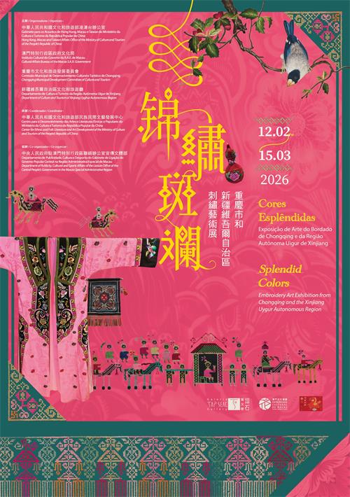“錦繡斑斕——重慶市和新疆維吾爾自治區刺繡藝術展”展期由212日至315日,在塔石藝文館展出,開放時間為上午10時至晚上7時,公眾假期照常開放,免費入場。有關展覽及工作坊詳情,可瀏覽文化局網站www.icm.gov.mo或於辦公時間致電2836 6866查詢。