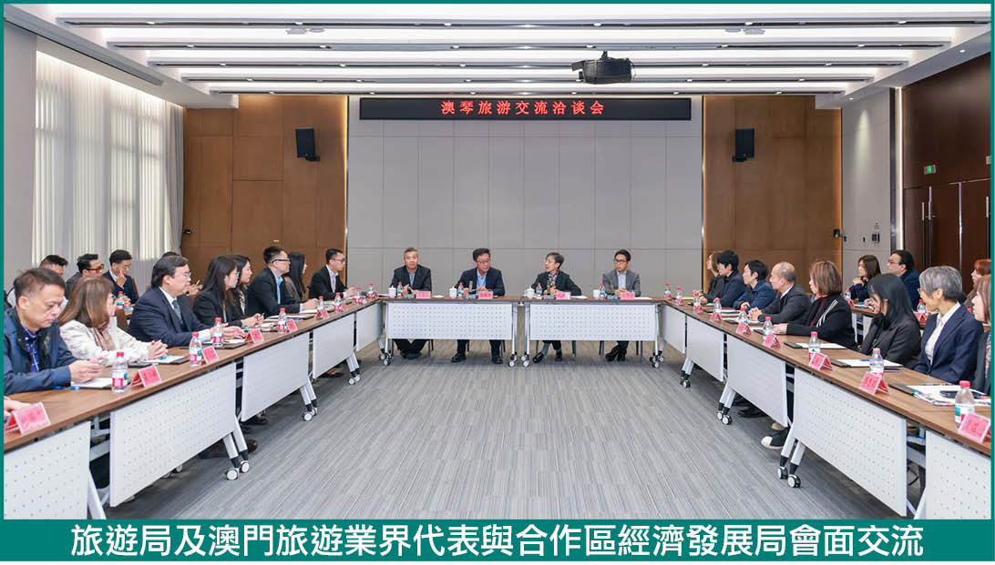 旅遊局局長文綺華及副局長程衛東與部門主管聯同澳門旅遊業界代表,與橫琴粵澳深度合作區經濟發展局局長吳創偉及副局長謝英俊等會面交流。