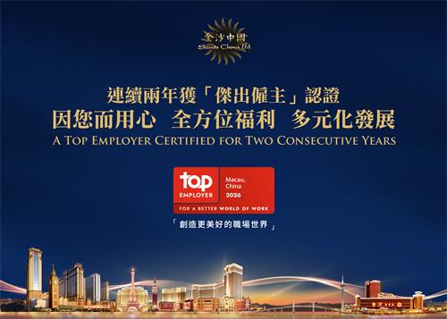 為慶祝金沙中國有限公司於2026年再度獲「傑出僱主調研機構」頒發「傑出僱主」認證,