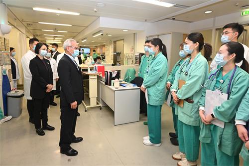 行政長官岑浩輝視察仁伯爵綜合醫院,瞭解新春期間的急診服務,感謝前線醫護人員堅守己職,