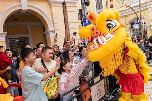【本報訊】旅遊局於今(17日)農曆大年初一在大三巴牌坊及議事亭前地舉辦“歡樂春節─2026年龍騰舞躍賀新春”社區巡演活動,與澳門居民和旅客歡度春節。