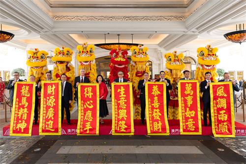 呂耀東先生偕同包括董事程裕昇先生、人力資源及行政集團董事呂慧玲女士、首席營運總監—澳門祁嘉杰先生等眾多管理層成員,依次在星際酒店正門及“澳門銀河”鑽石大堂外恭敬祈福,祈願新的一年風調雨順、祥和興旺。隨後,一眾管理層成員為瑞獅點晴,伴隨著鑼鼓聲聲和爆竹隆隆,雄獅生猛活潑起舞,現場歡騰喜慶,吸引了眾多遊客駐足觀賞,共同感受這份熱鬧和喜悅。