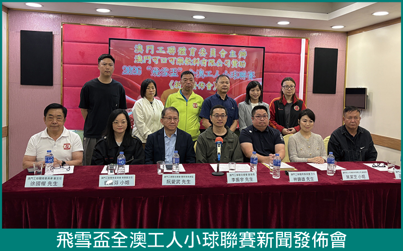 【本報訊】澳門工聯體育委員會主辦、澳門可口可樂飲料有限公司贊助的“2026‘飛雪盃’全澳工人小球聯賽”將於323日揭開戰幔,四組別將分別於226日或39日起接受報名。活動旨在擴大本澳各業職工團結,發展工人足球運動。