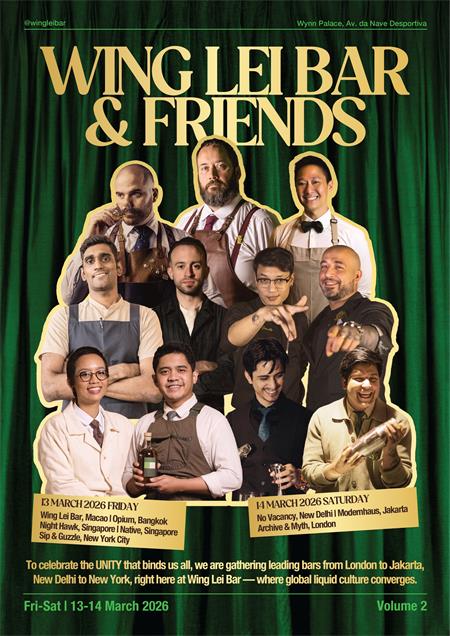 【本報訊】延續首次活動的熱烈迴響,永利吧年度企劃“Wing Lei Bar & Friends”第二篇章將於3月13至14日登場,再次將永利皇宮化身為雞尾酒愛好者的朝聖地。來自紐約、倫敦、曼谷、新加坡、新德里及雅加達六座城市的頂尖酒吧代表將齊聚一堂,帶來結合客座調酒、專題對談與文化交流的豐富週末體驗,為澳門三月最受矚目的雞尾酒盛事揭開序幕。