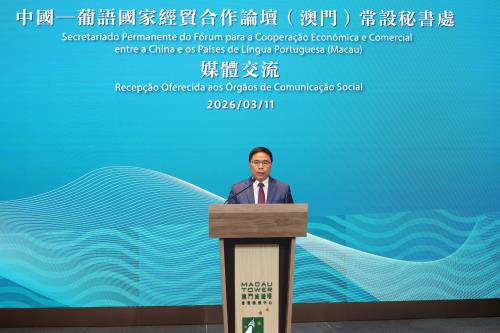 【本報訊】中葡論壇常設秘書處今晚舉行在旅遊塔4樓宴會廳舉行傳媒交流會晚宴。秘書長季先崢感謝澳門媒體為增進民眾對中葡論壇以及中葡商貿合作服務平臺的瞭解、促進中國與葡語國家之間的合作和友誼做出寶貴貢獻。他在回顧2025年工作時表示,常設秘書處積極推動落實第六屆部長級會議有關分工任務,各項工作穩步推進。今年將保持去年的工作節奏,繼續推進落實經貿合作行動綱領,並以及國務院副總理丁薛祥在十四屆全國人大四次會議提出,澳門要不斷彰顯“一中心、一平台、一基地”作用,秘書處將積極助力本澳有關工作;今年將繼續推進落實經貿合作行動綱領,以及推進中葡全方位互利合作。