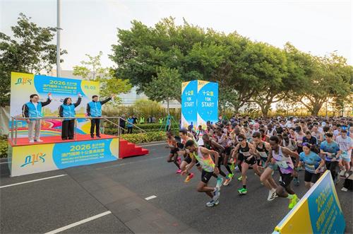 【本報訊】由澳門特別行政區政府體育局、金沙中國及澳門田徑俱樂部共同主辦的年度體育盛事—— “ 202 6金沙中國澳門國際十公里長跑賽”週日圓滿舉行。十公里及歡樂跑兩個計劃吸引了近萬名來自38個國家及地區的跑手出戰,在城市跑道上揮灑汗水,氣氛熱烈。經過逐角點後,十公里賽男、女子全場總冠軍分別由稀疏的艾斯發(Aklilu Gebremariam Asfaw )及肯亞的莫煒(FridahNdinda Mweu )進行。