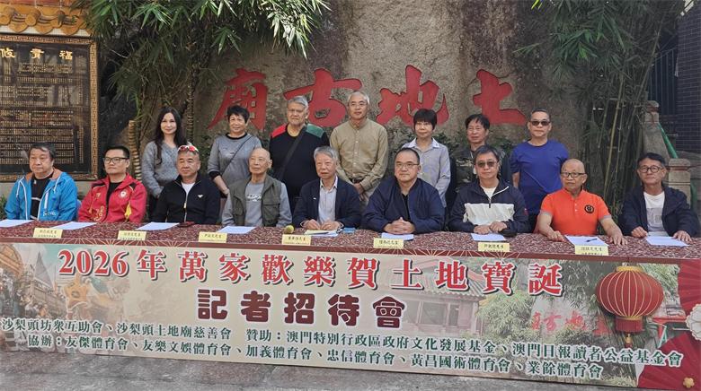 【本報訊】沙梨頭坊眾互助會及沙梨頭土地廟慈善會將於19至21日合辦 “2026年萬家歡樂賀土地寶誕”系列活動,包括有神功戲、醒獅、恭拜、敬老盆菜等,以及攝影比賽;旨在傳承“土地信俗”國家級非遺,弘揚傳統廟宇風俗文化,發揚敬老愛老的優良傳統。