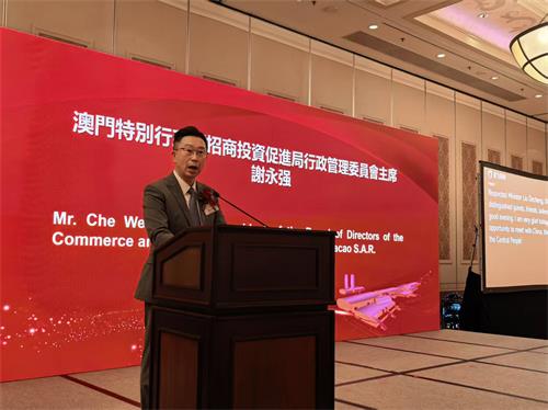 介紹會上招商局主席謝永強、中總理事長馬志毅、葡中工商會澳門分會主席區偉時、新生代採購商代表馮文滔、中國對外貿易中心主任朱咏先後致辭。