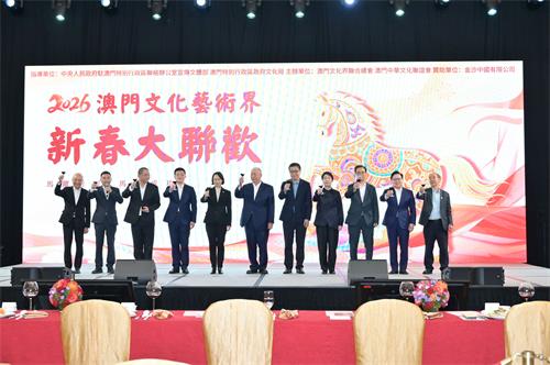 【本報訊】由澳門文化界聯合總會與澳門中華文化聯誼會共同主辦的“2026丙午年澳門文化藝術界新春大聯歡”,於3月21日假澳門威尼斯人三樓宴會廳隆重舉行。活動當晚匯聚了本澳主要文化藝術社團代表及知名藝術家,透過書畫雅集與主題藝術展演,展現澳門文藝界的蓬勃活力。