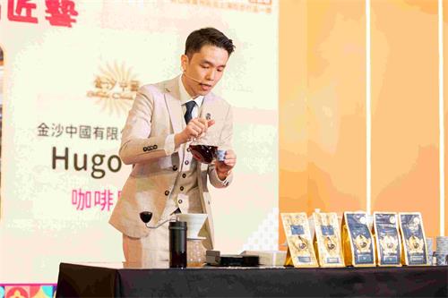 金沙中國得獎咖啡師范豪傑展示咖啡冲泡的技巧。