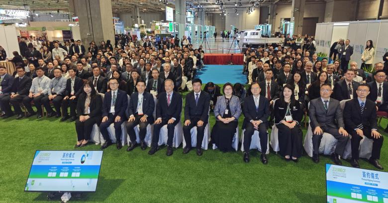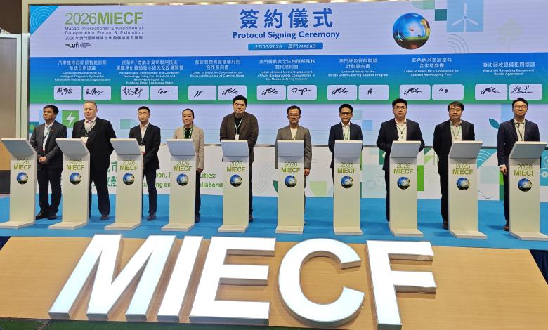 【本報訊】“2026年澳門國際環保合作發展論壇及展覽”已有眾多參展參會的客商成功配對並完成洽談,並現場簽約,大會舉行的集體簽約儀式今(27)日上午假展館A的“綠色會議區”舉行,百餘家客商代表分13批先後上台簽署,簽約項目逾60份,涉及:推動節能減碳、環保科技、ESG合作、環保產品經銷等方面合作;此外,另有客商在簽約儀式前亦有完成簽約。