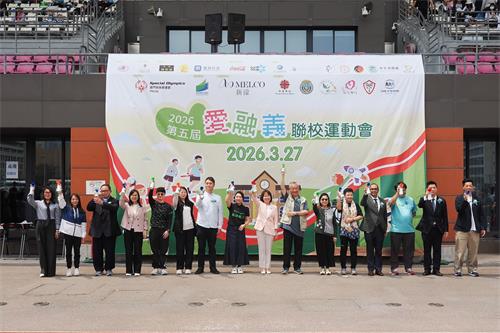 【本報訊】由澳門特殊奧運會(下稱特奧會)主辦,新濠博亞娛樂贊助,澳門教育及青年發展局資助,明愛學校、協同特殊教育學校、二龍喉公立學校、啟智學校、氹仔中葡學校及聯國學校合辦,並獲澳門大學場地支持、張權破痛油中藥廠贊助獎品、陳光記燒味飯店贊助午膳、夏鼎科技有限公司提供賽事設備、澳門可口可樂飲料有限公司提供活動用水的2026第五屆“愛融義”聯校運動會,已於3月27日(星期五)假澳門大學運動場圓滿舉行。