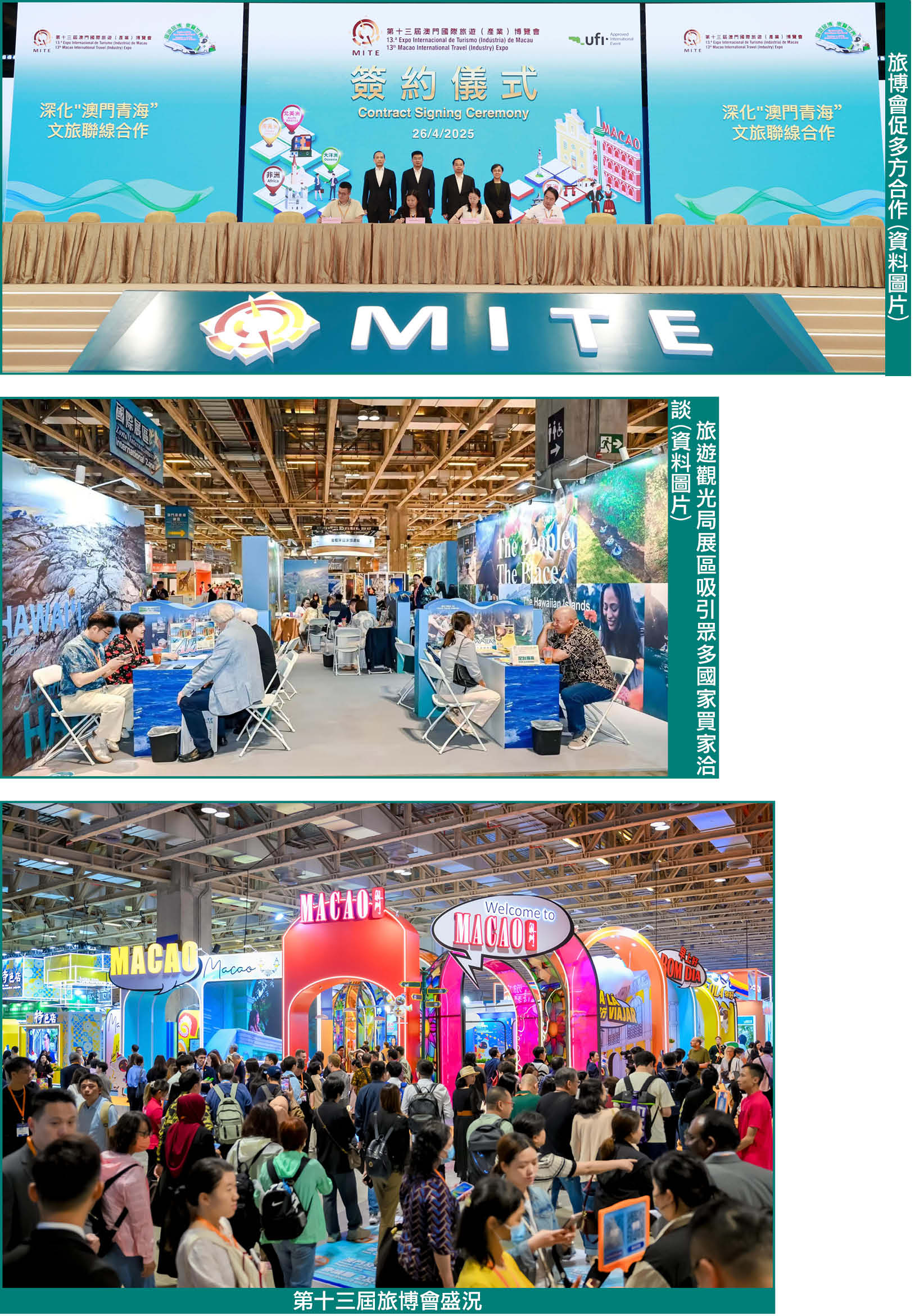 【本報訊】第十四屆澳門國際旅遊(產業)博覽會(簡稱“第十四屆旅博會”)將於4月10日至12日假澳門威尼斯人金光會展展館A、B、C舉行。第十四屆旅博會以“薈萃環球,旅見未來”為主題,以嶄新精彩亮點出現,融合“旅遊+”元素,呈獻五大嶄新亮點,展場面積達3萬平方米,展位近1,500個,超過700家來自58個國家及地區的參展商以及超過600位海內外特邀買家參與,首設的“旅遊科技展廳”及“低空經濟展館”,將展示前沿旅遊科技產品及服務、城市空中交通及低空旅遊等創新應用場景。